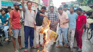 रोसड़ा जिला की घोषणा न होने पर काला दिवस, महावीर चौक पर पुतला दहन।